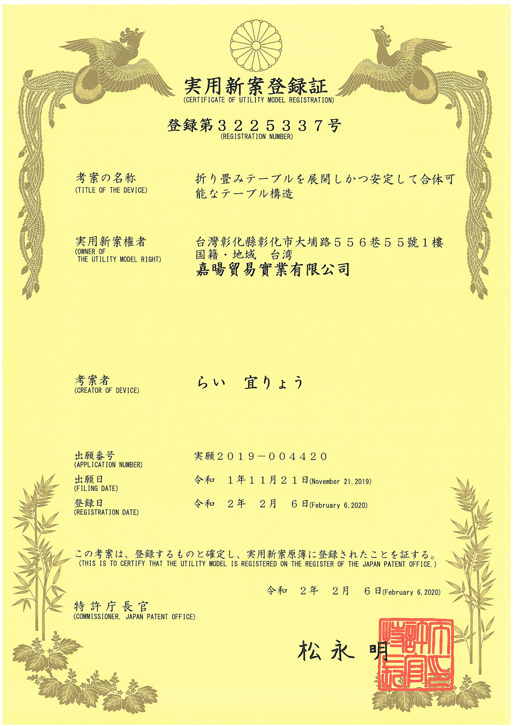 摺疊桌獨家專利
