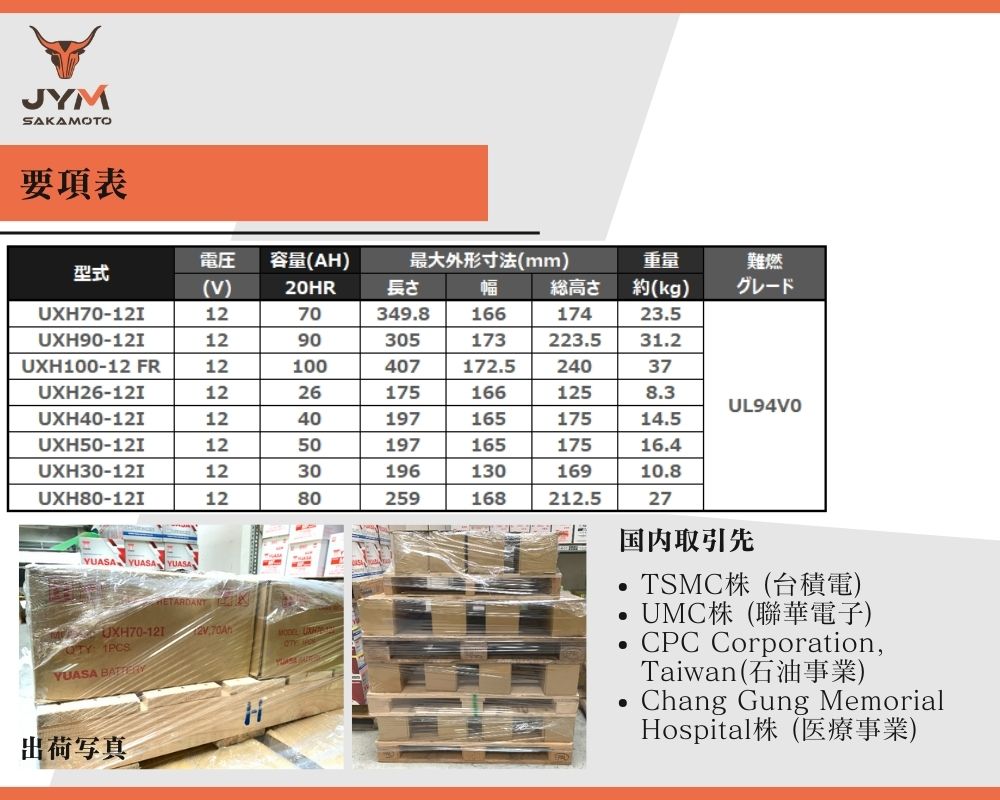 高エネルギー・高率放電性能に優れており、高出力精密機器や高効率UPS無停電電源装置に最適です。